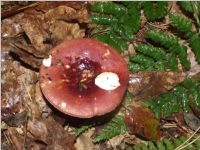 Ansicht von schräg oben. Die Huthaut ist häufig heller und leuchtender als bei diesem Exemplar. Diese Täublingsart kommt zudem meist in Nadelwäldern vor, so dass es sich hierbei eher um eine Varität des Kirschroten Speitäublings handelt.