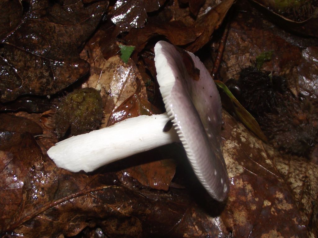 Weiterer Blick auf die Hutunterseite. Dieses Bild wurde ohne Blitz aufgenommen und die Lamellen sind hier deutlich weißer.
