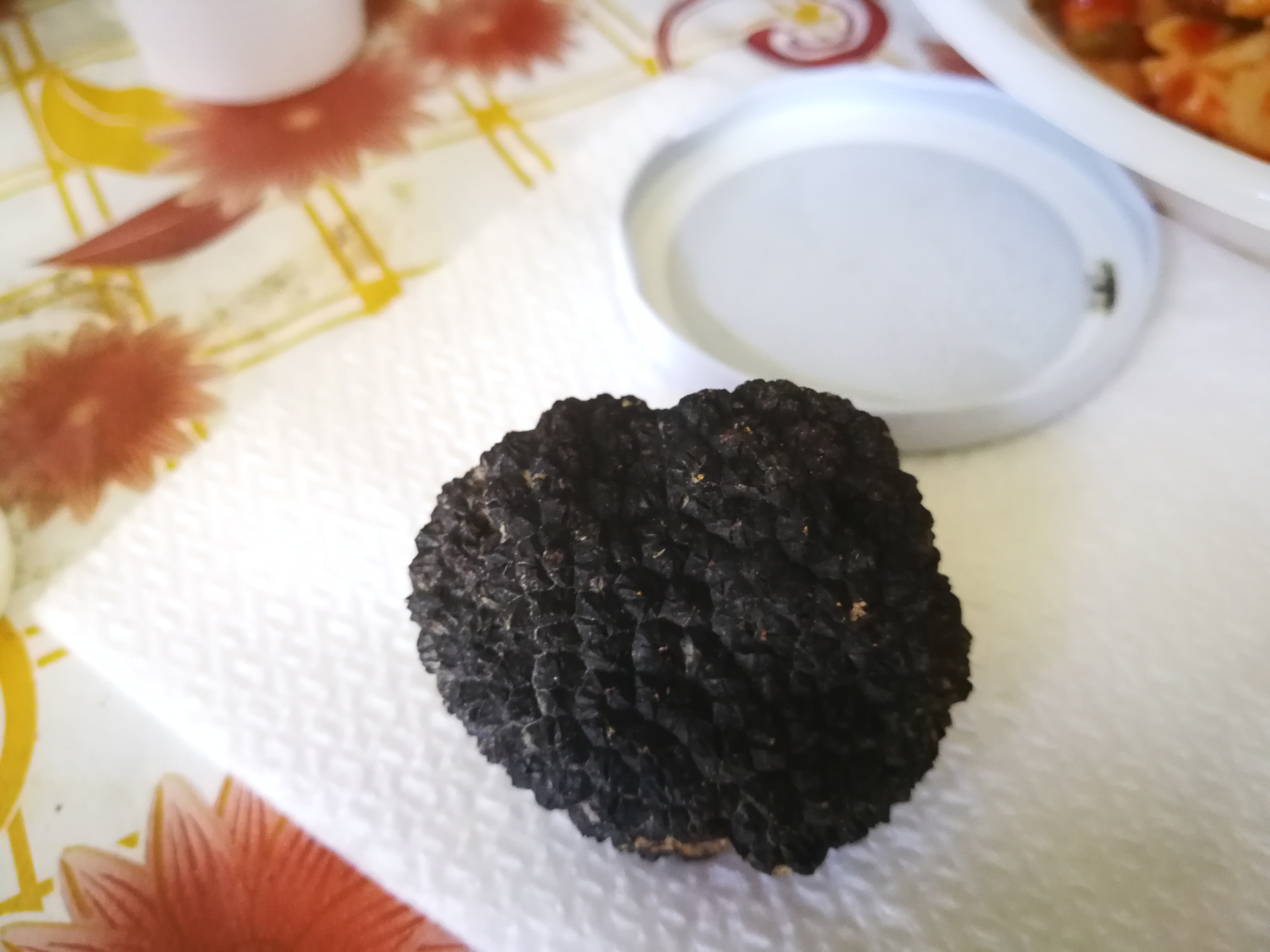Der Burgundertrüffel ist botanisch eng mit dem Sommertrüffel verwandt, zeichnet sich jedoch durch eine dunkelbraune bis schokoladenfarbene Gleba (Fruchtfleisch) und ein wesentlich intensiveres Aroma aus. Während der Sommertrüffel im hellen Sonnenlicht reift, bevorzugt die Burgunder-Variante schattigere, feuchtere Standorte und reift erst im Herbst bis in den Winter hinein. Dieser spezifische Fund stammt aus den italienischen Abruzzen, einer Kalksteinregion, die für ihre hohe Trüffelqualität bekannt ist.